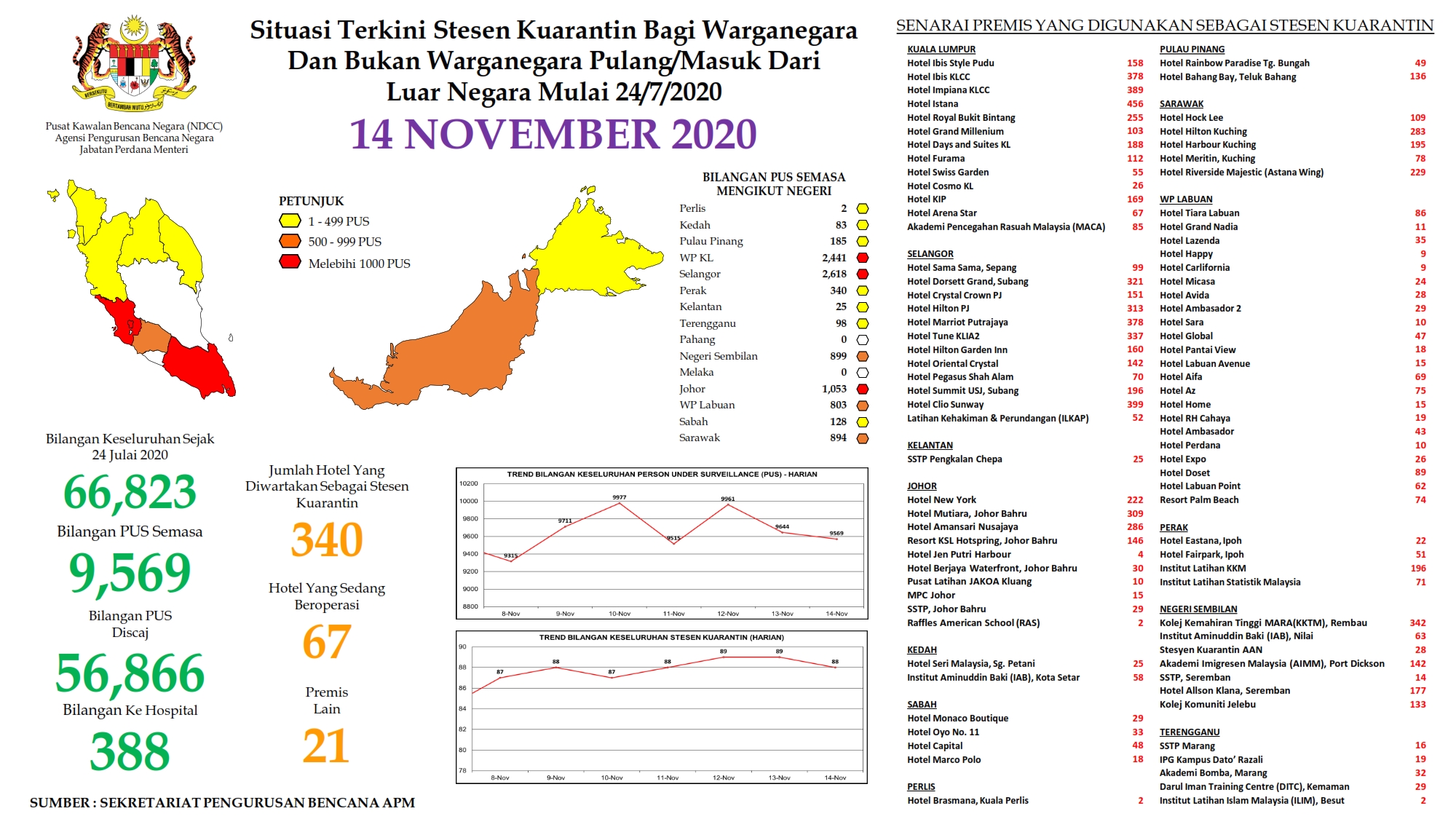 Situasi Terkini Stesen Kuarantin Bagi Warganegara Dan Bukan Warganegara Pulang/Masuk Dari Luar Negara 14/11/2020 Aiman Siaran Media 14 November 2020 Hits: 528 Rating: ( 0 Rating ) Please Rate Vote 1 Vote 2 Vote 3 Vote 4 Vote 5 Lihat / Muat Turun PDF Facebook Twitter Prev Next