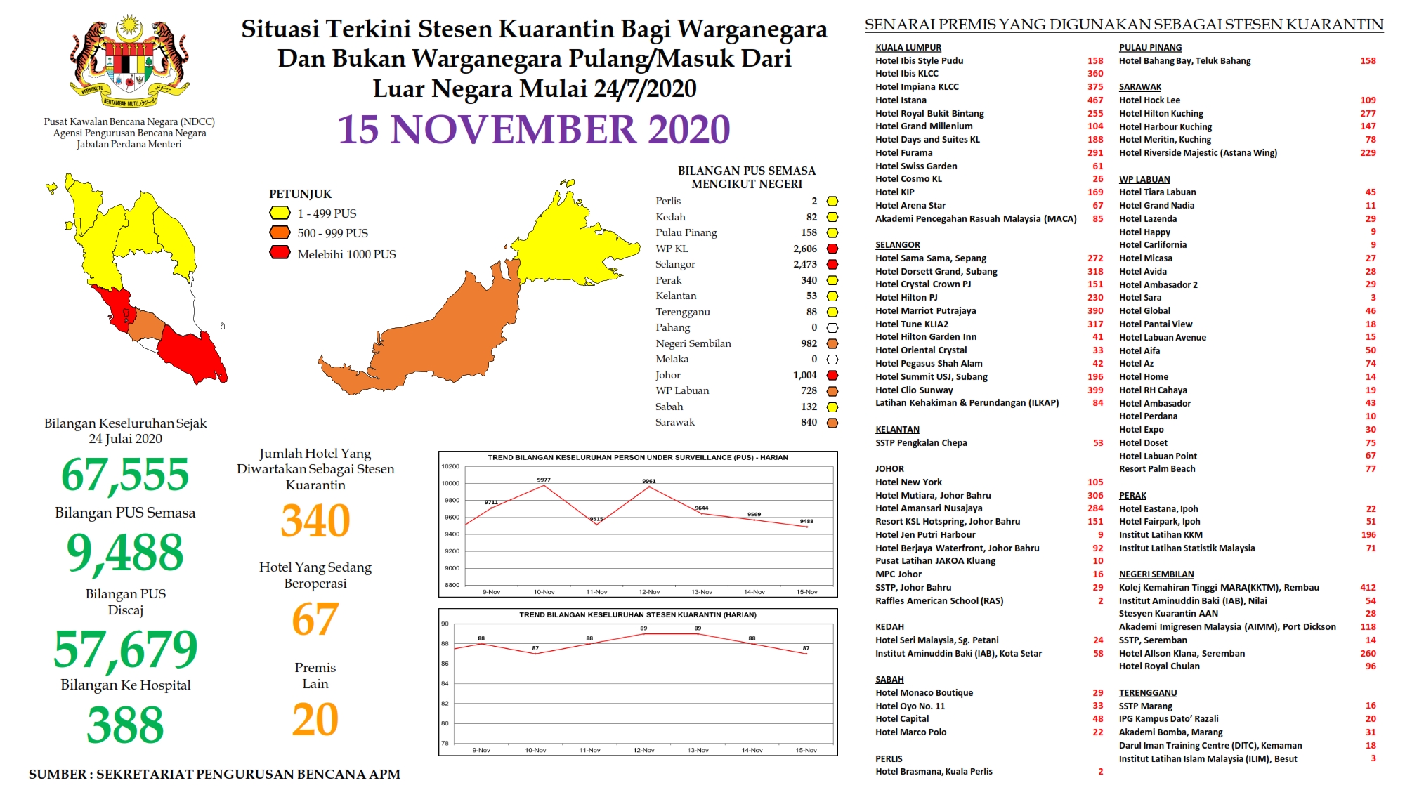 Situasi Terkini Stesen Kuarantin Bagi Warganegara Dan Bukan Warganegara Pulang/Masuk Dari Luar Negara 15/11/2020 Aiman Siaran Media 15 November 2020 Hits: 899 Rating: ( 0 Rating ) Please Rate Vote 1 Vote 2 Vote 3 Vote 4 Vote 5 Lihat / Muat Turun PDF Facebook Twitter Prev Next
