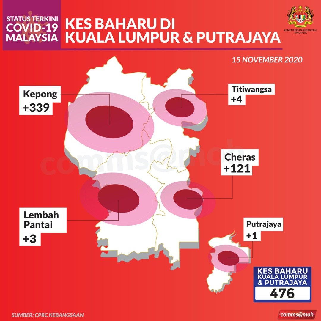Situasi Terkini Kes Baharu COVID-19 Di WP Kuala Lumpur & Putrajaya 15/11/2020 Aiman Siaran Media 15 November 2020 Hits: 821 Rating: ( 0 Rating ) Please Rate Vote 1 Vote 2 Vote 3 Vote 4 Vote 5 Lihat / Muat Turun JPG Facebook Twitter Prev Next