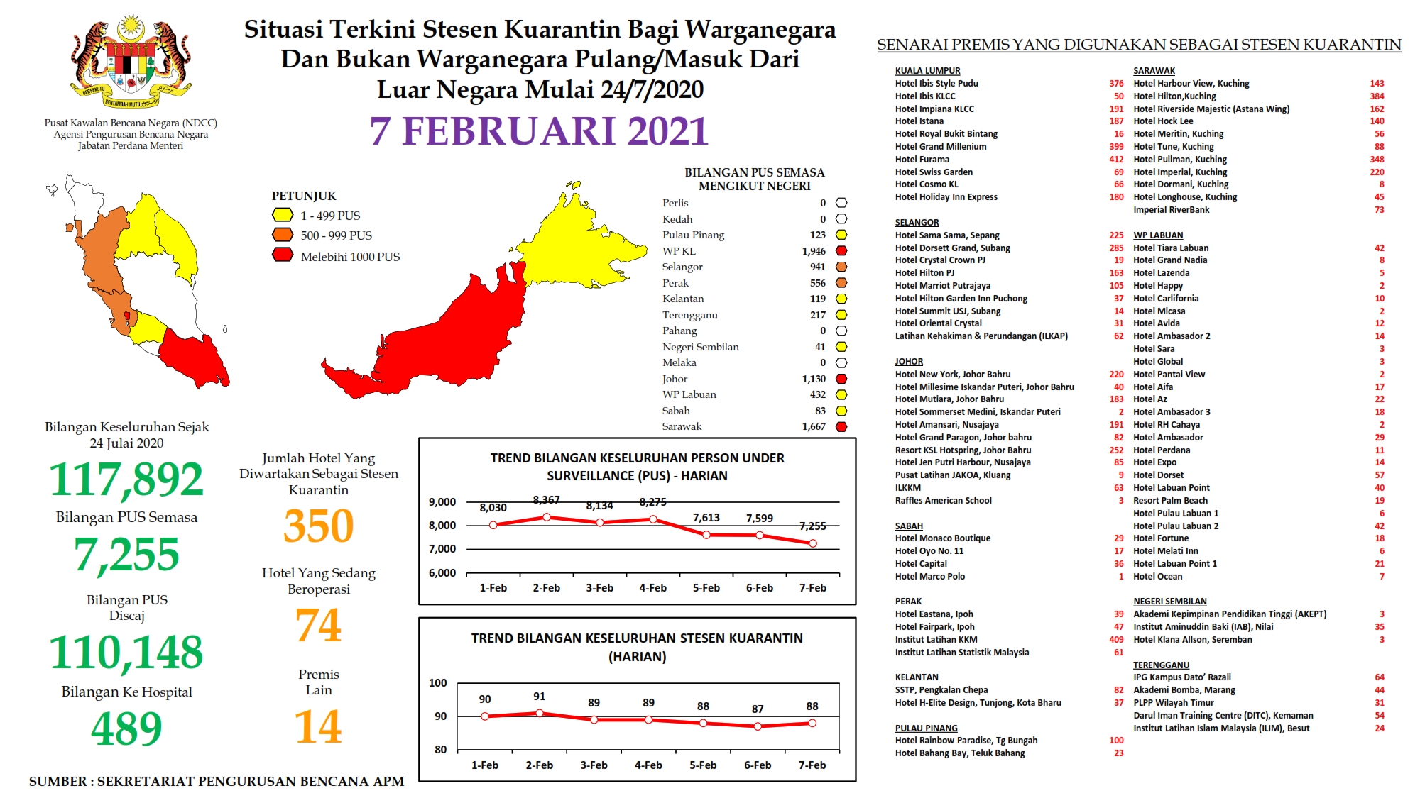Situasi Terkini Stesen Kuarantin Bagi Warganegara Dan Bukan Warganegara Pulang/Masuk Dari Luar Negara 07/02/2021 Aiman Siaran Media 07 February 2021 Hits: 782 Rating: ( 0 Rating ) Please Rate Vote 1 Vote 2 Vote 3 Vote 4 Vote 5 Lihat / Muat Turun PDF Facebook Twitter Prev Next
