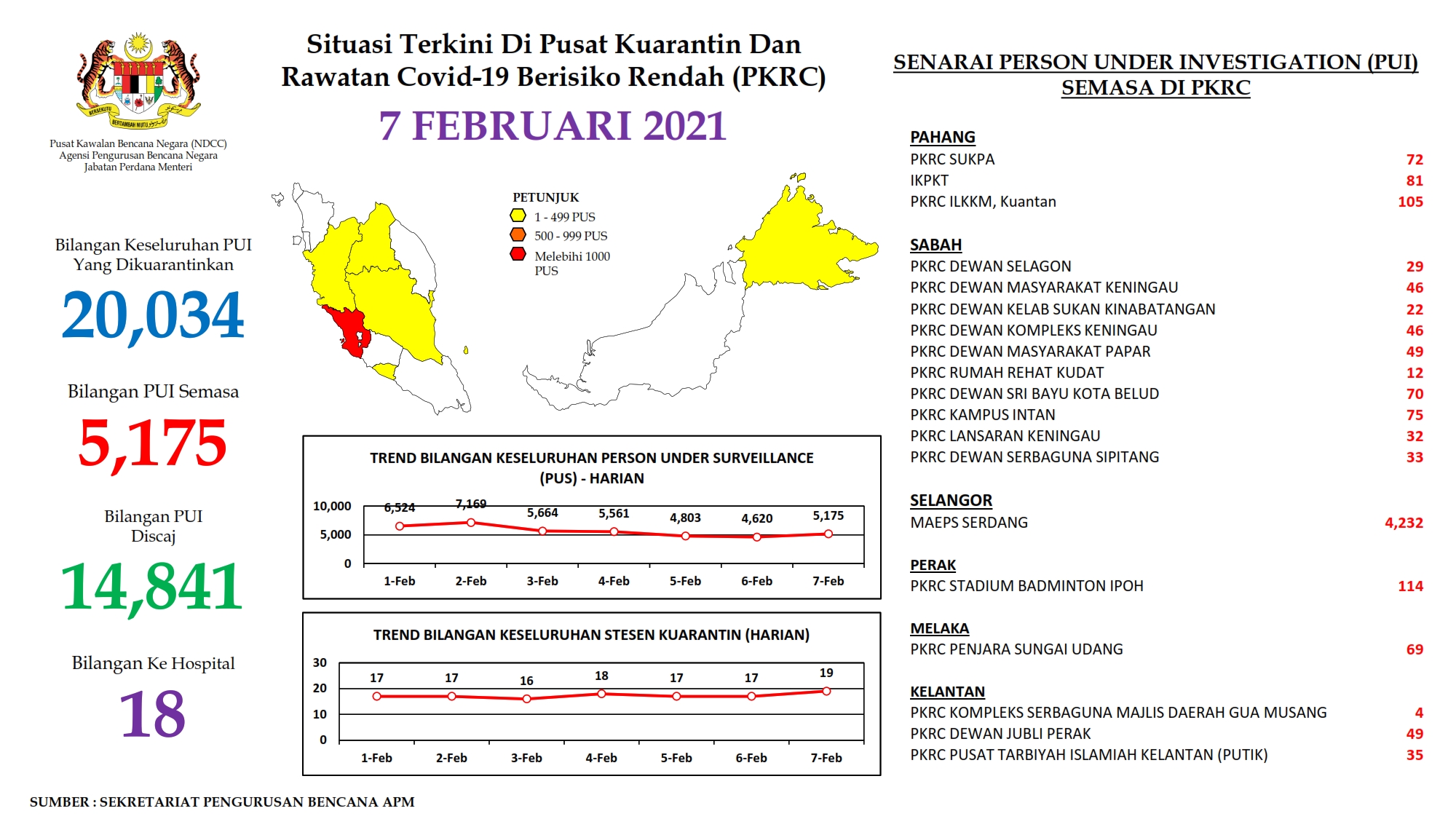 Situasi Terkini Di Pusat Kuarantin Dan Rawatan Covid-19 Berisiko Rendah 07/02/2021 Aiman Siaran Media 07 February 2021 Hits: 497 Rating: ( 0 Rating ) Please Rate Vote 1 Vote 2 Vote 3 Vote 4 Vote 5 Lihat / Muat Turun PDF Facebook Twitter Prev Next