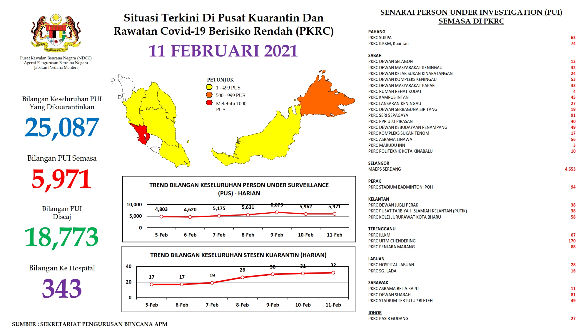 Situasi Terkini Di Pusat Kuarantin Dan Rawatan Covid-19 Berisiko Rendah 12/02/2021 Aiman Siaran Media 12 February 2021 Hits: 628 Rating: ( 0 Rating ) Please Rate Vote 1 Vote 2 Vote 3 Vote 4 Vote 5 Lihat / Muat Turun PDF Facebook Twitter Prev Next