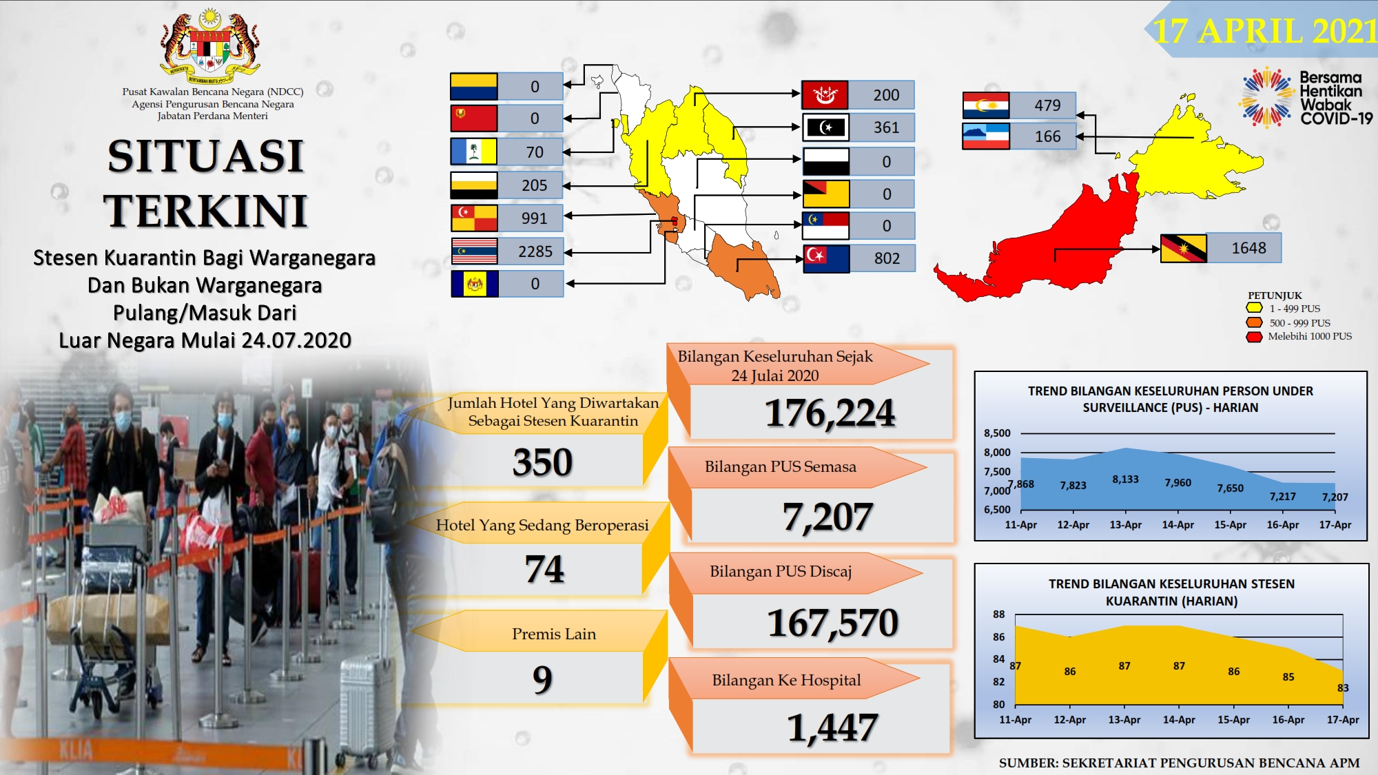 Situasi Terkini Stesen Kuarantin Bagi Warganegara Dan Bukan Warganegara Pulang/Masuk Dari Luar Negara 17/04/2021 Aiman Siaran Media 17 April 2021 Hits: 863 Rating: ( 0 Rating ) Please Rate Vote 1 Vote 2 Vote 3 Vote 4 Vote 5 Lihat / Muat Turun PDF Facebook Twitter Prev Next
