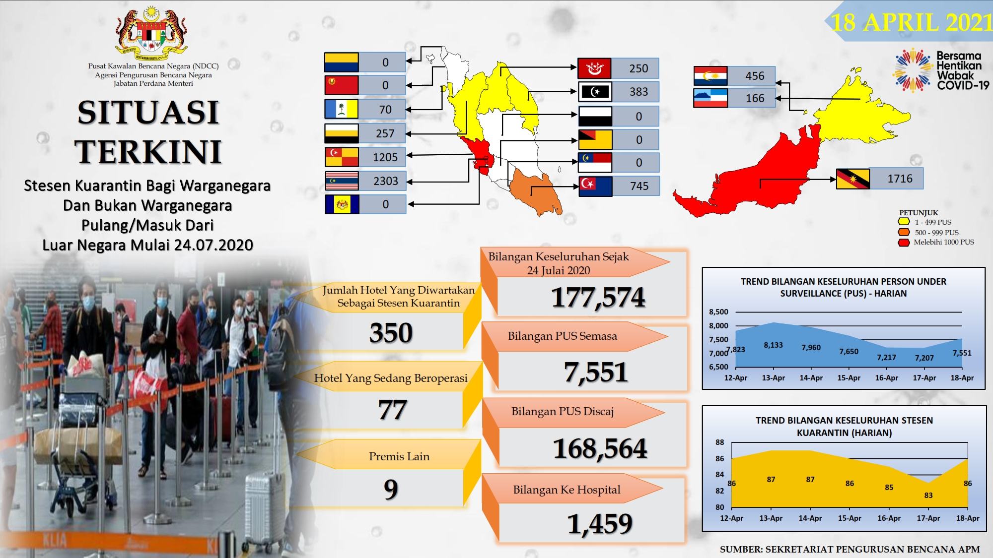 Situasi Terkini Stesen Kuarantin Bagi Warganegara Dan Bukan Warganegara Pulang/Masuk Dari Luar Negara 18/04/2021 Aiman Siaran Media 18 April 2021 Hits: 916 Rating: ( 0 Rating ) Please Rate Vote 1 Vote 2 Vote 3 Vote 4 Vote 5 Lihat / Muat Turun PDF Facebook Twitter Prev Next