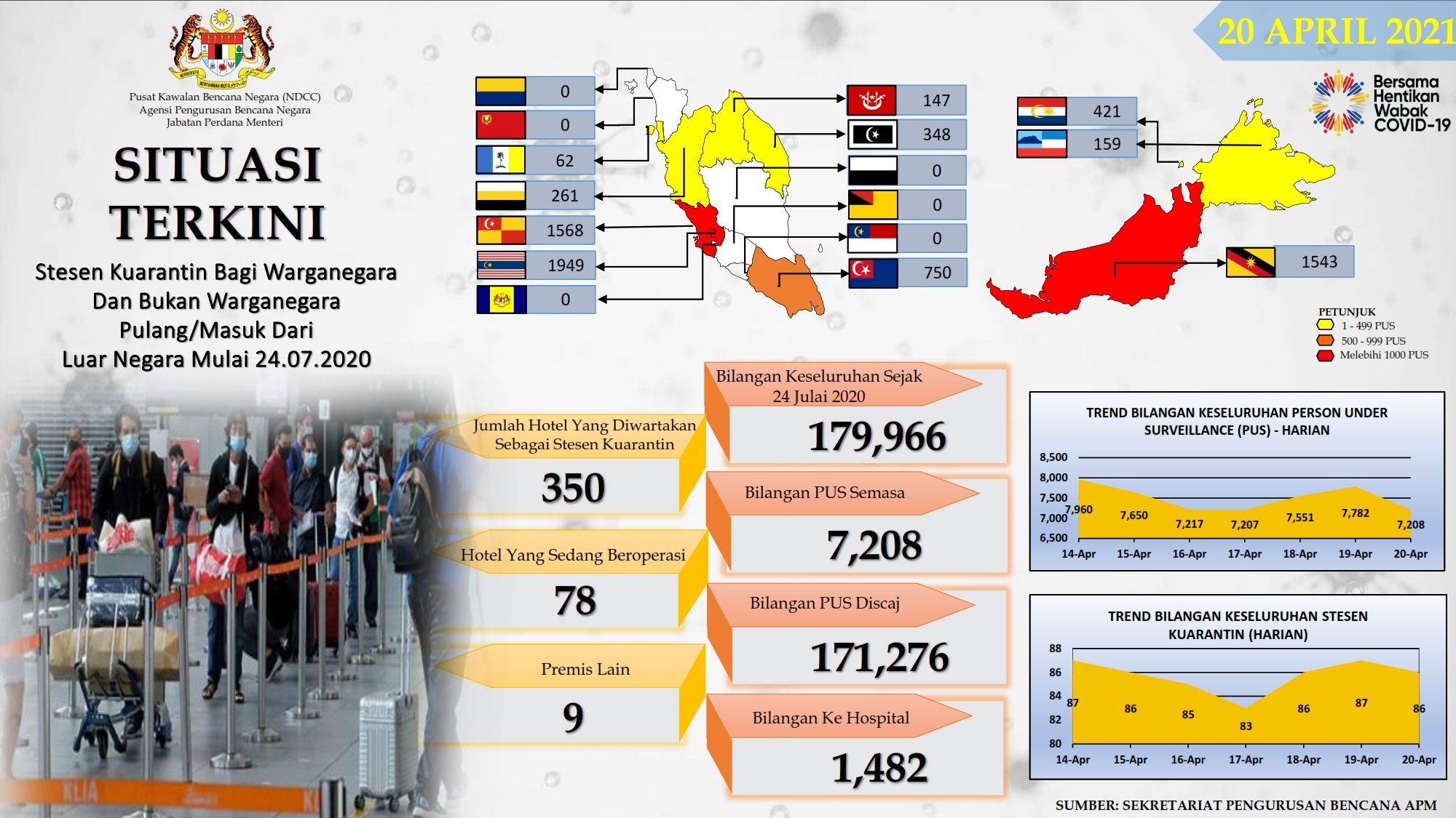 Situasi Terkini Stesen Kuarantin Bagi Warganegara Dan Bukan Warganegara Pulang/Masuk Dari Luar Negara 20/04/2021 Afrina Siaran Media 20 April 2021 Hits: 924 Rating: ( 0 Rating ) Please Rate Vote 1 Vote 2 Vote 3 Vote 4 Vote 5 Lihat / Muat Turun PDF Facebook Twitter Prev Next