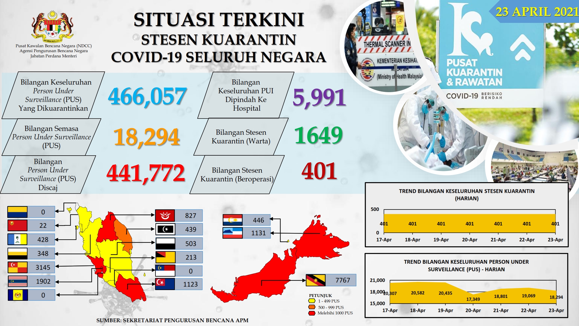 Situasi Terkini Stesen Kuarantin COVID-19 Seluruh Negara 23/04/2021 Afrina Siaran Media 23 April 2021 Hits: 826 Rating: ( 0 Rating ) Please Rate Vote 1 Vote 2 Vote 3 Vote 4 Vote 5 Lihat / Muat Turun PDF Facebook Twitter Prev Next