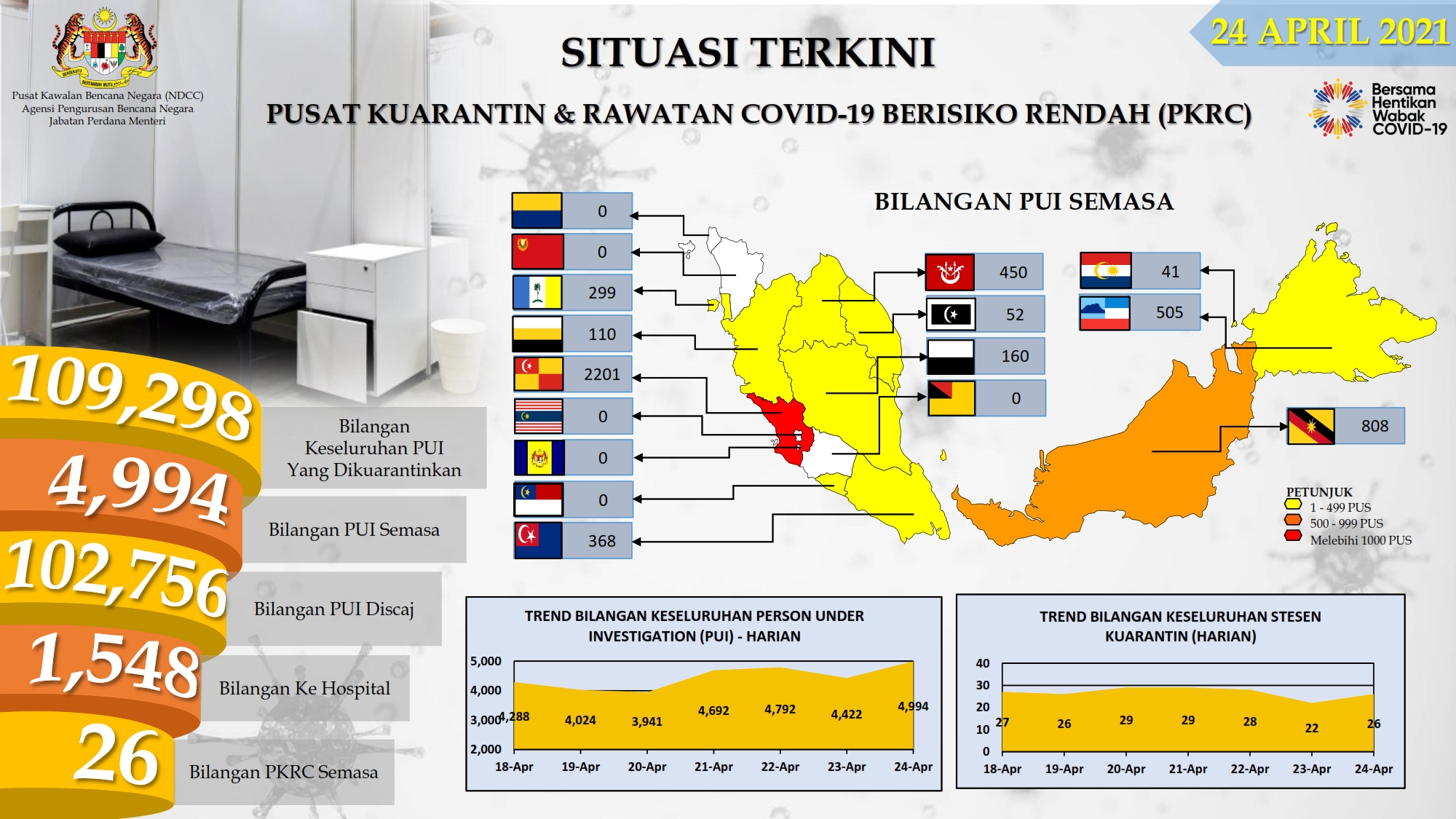 Situasi Terkini Di Pusat Kuarantin Dan Rawatan Covid-19 Berisiko Rendah 24/04/2021 Afrina Siaran Media 24 April 2021 Hits: 724 Rating: ( 0 Rating ) Please Rate Vote 1 Vote 2 Vote 3 Vote 4 Vote 5 Lihat / Muat Turun PDF Facebook Twitter Prev Next