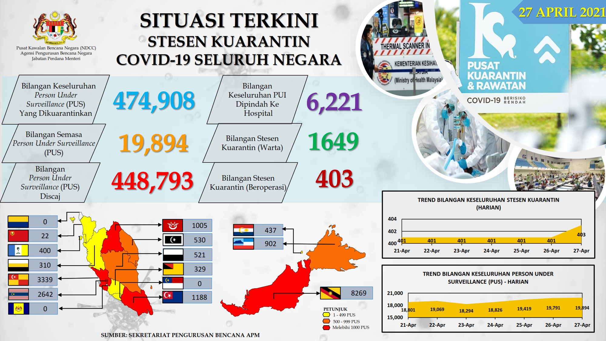 Situasi Terkini Stesen Kuarantin COVID-19 Seluruh Negara 27/04/2021 Afrina Siaran Media 27 April 2021 Hits: 800 Rating: ( 0 Rating ) Please Rate Vote 1 Vote 2 Vote 3 Vote 4 Vote 5 Lihat / Muat Turun PDF Facebook Twitter Prev Next