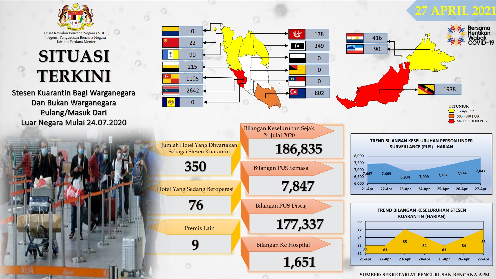 Situasi Terkini Stesen Kuarantin Bagi Warganegara Dan Bukan Warganegara Pulang/Masuk Dari Luar Negara 27/04/2021 Afrina Siaran Media 27 April 2021 Hits: 718 Rating: ( 0 Rating ) Please Rate Vote 1 Vote 2 Vote 3 Vote 4 Vote 5 Lihat / Muat Turun PDF Facebook Twitter Prev Next