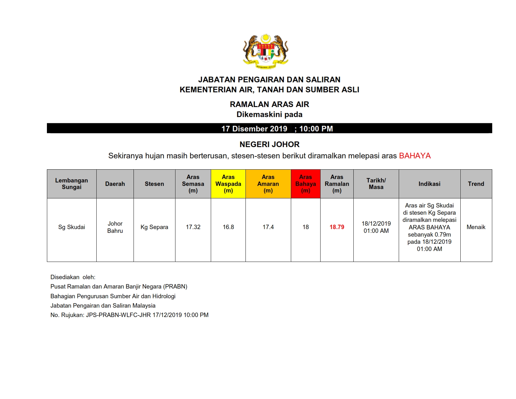 Ramalan Aras Air Johor 17/12/2019 1000 PM Aiman Cuaca 17 December 2019 Hits: 1216 Rating: ( 0 Rating ) Please Rate Vote 1 Vote 2 Vote 3 Vote 4 Vote 5 Lihat / Muat Turun PDF Muat Turun JPG 1 Facebook Twitter Prev Next