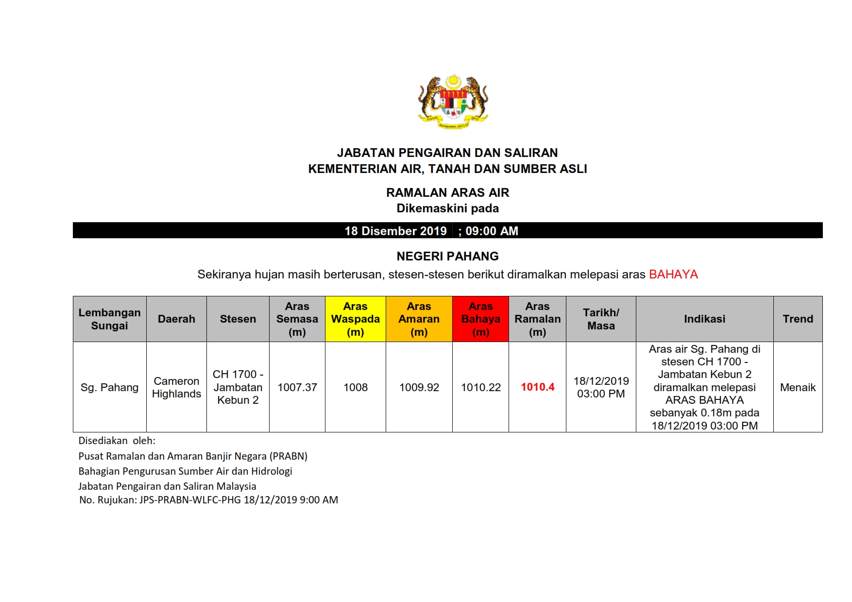 Ramalan Aras Air Pahang 18/12/2019 0900 AM Aiman Cuaca 18 December 2019 Hits: 942 Rating: ( 0 Rating ) Please Rate Vote 1 Vote 2 Vote 3 Vote 4 Vote 5 Lihat / Muat Turun PDF Muat Turun JPG 1 Facebook Twitter Prev Next