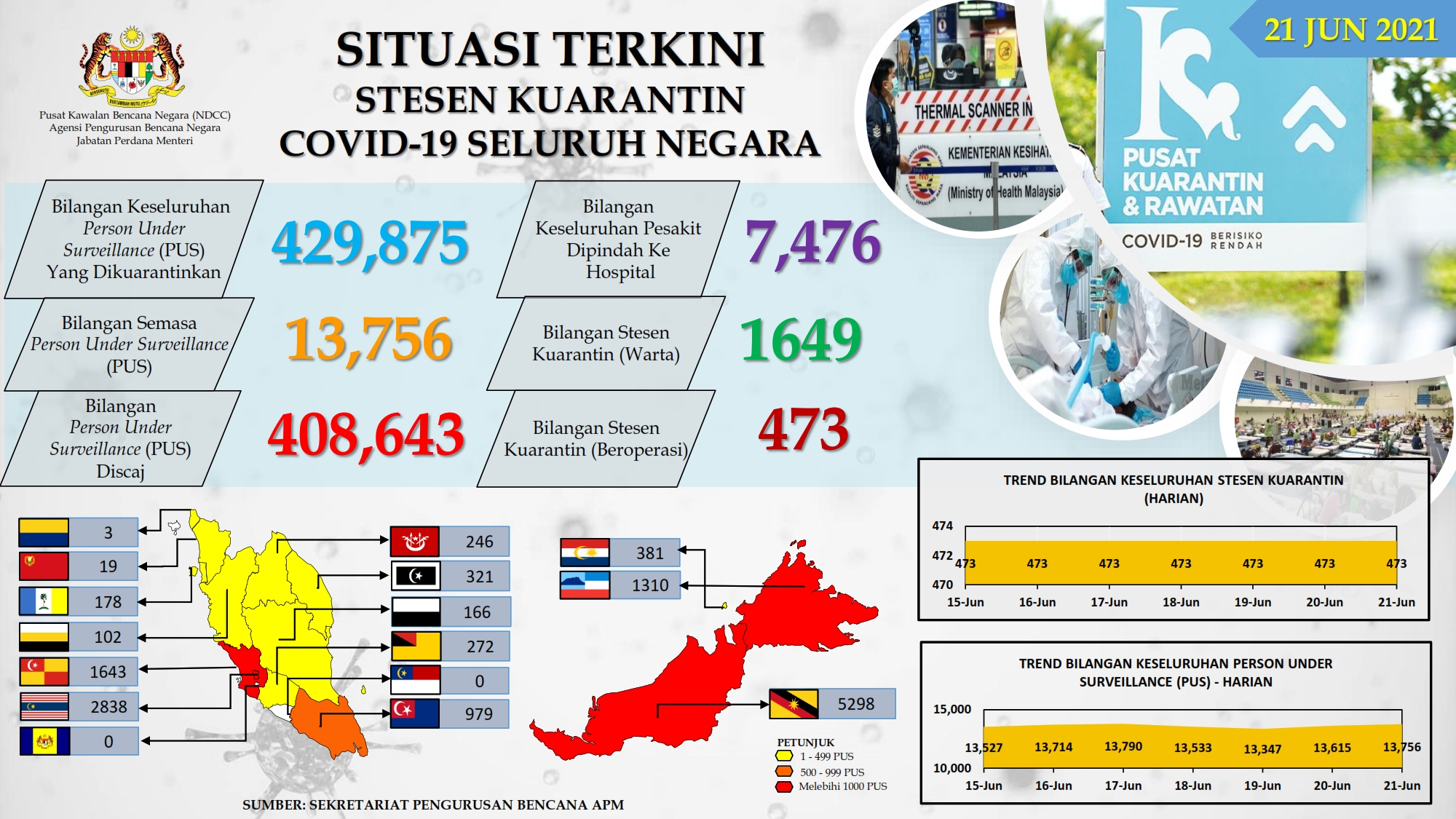 Situasi Terkini Stesen Kuarantin COVID-19 Seluruh Negara 21/06/2021 Afrina Siaran Media 21 June 2021 Hits: 840 Rating: ( 0 Rating ) Please Rate Vote 1 Vote 2 Vote 3 Vote 4 Vote 5 Lihat / Muat Turun PDF Facebook Twitter Prev Next