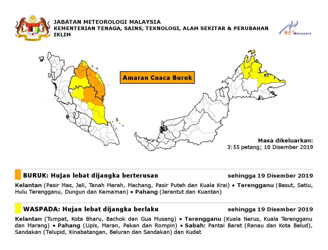 Amaran Cuaca Buruk 18/12/2019 0355 PM Azmin Cuaca 18 December 2019 Hits: 828 Rating: ( 0 Rating ) Please Rate Vote 1 Vote 2 Vote 3 Vote 4 Vote 5 Lihat / Muat Turun JPG Facebook Twitter Prev Next