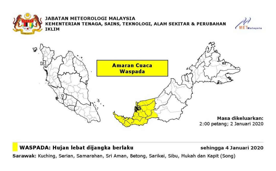 Amaran Cuaca Waspada 02/01/2020 0200 PM Aiman Cuaca 02 January 2020 Hits: 844 Rating: ( 0 Rating ) Please Rate Vote 1 Vote 2 Vote 3 Vote 4 Vote 5 Lihat / Muat Turun JPG Facebook Twitter Prev Next