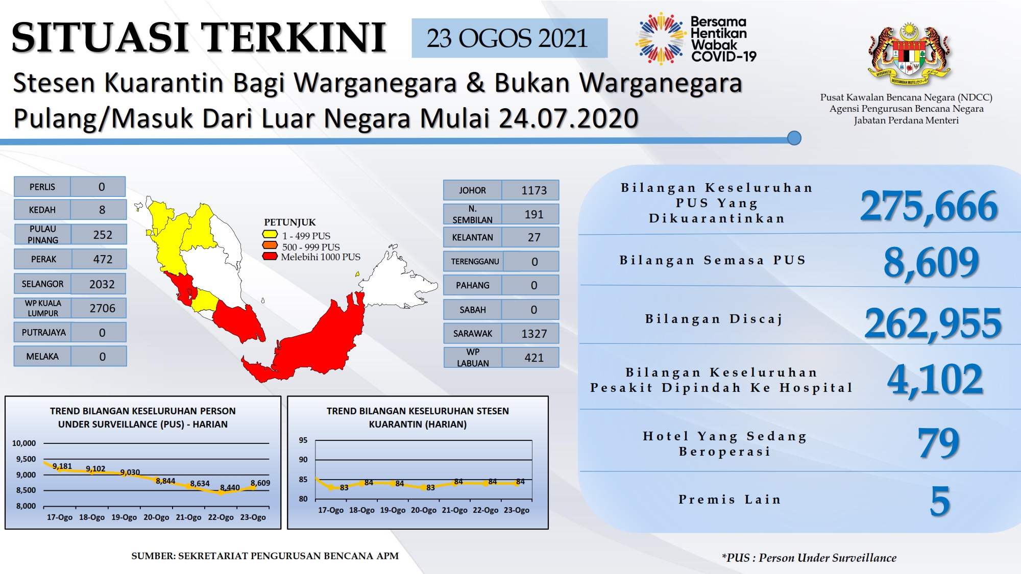 Situasi Terkini Stesen Kuarantin Bagi Warganegara Dan Bukan Warganegara Pulang/Masuk Dari Luar Negara 23/08/2021 Aiman Siaran Media 23 August 2021 Hits: 528 Rating: ( 0 Rating ) Please Rate Vote 1 Vote 2 Vote 3 Vote 4 Vote 5 Lihat / Muat Turun PDF Facebook Twitter Prev Next