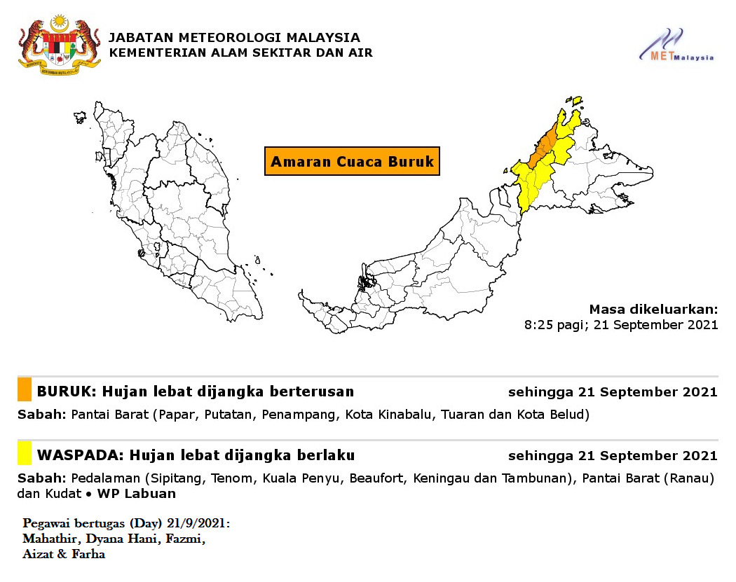 Amaran Cuaca Buruk 21/09/2021 0825 AM Aiman Cuaca 21 September 2021 Hits: 1007 Rating: ( 0 Rating ) Please Rate Vote 1 Vote 2 Vote 3 Vote 4 Vote 5 Lihat / Muat Turun JPG Facebook Twitter Prev Next