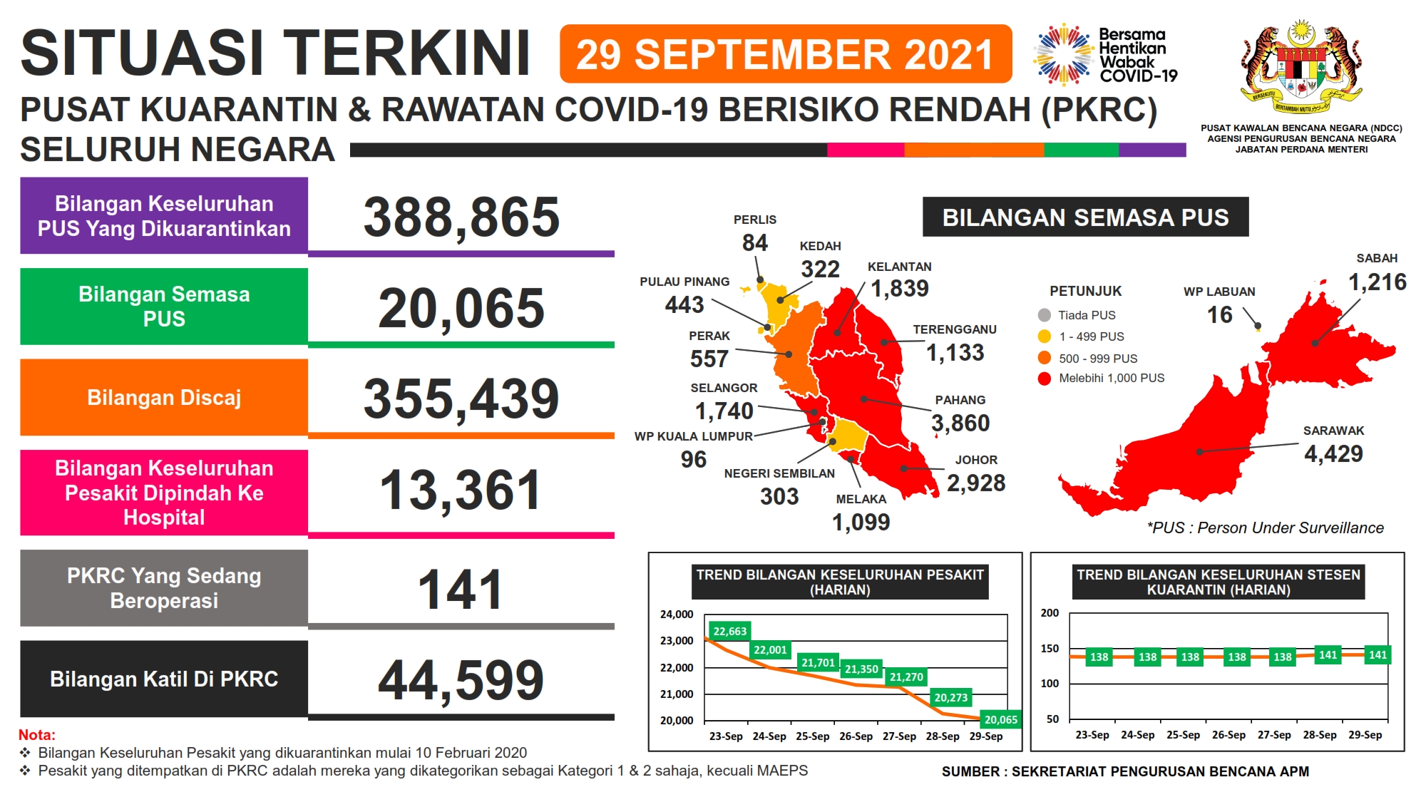 Situasi Terkini Stesen Kuarantin & Rawatan Covid-19 Berisiko Rendah (PKRC) 29/09/2021 Aiman Siaran Media 29 September 2021 Hits: 593 Rating: ( 0 Rating ) Please Rate Vote 1 Vote 2 Vote 3 Vote 4 Vote 5 Lihat / Muat Turun PDF Facebook Twitter Prev Next
