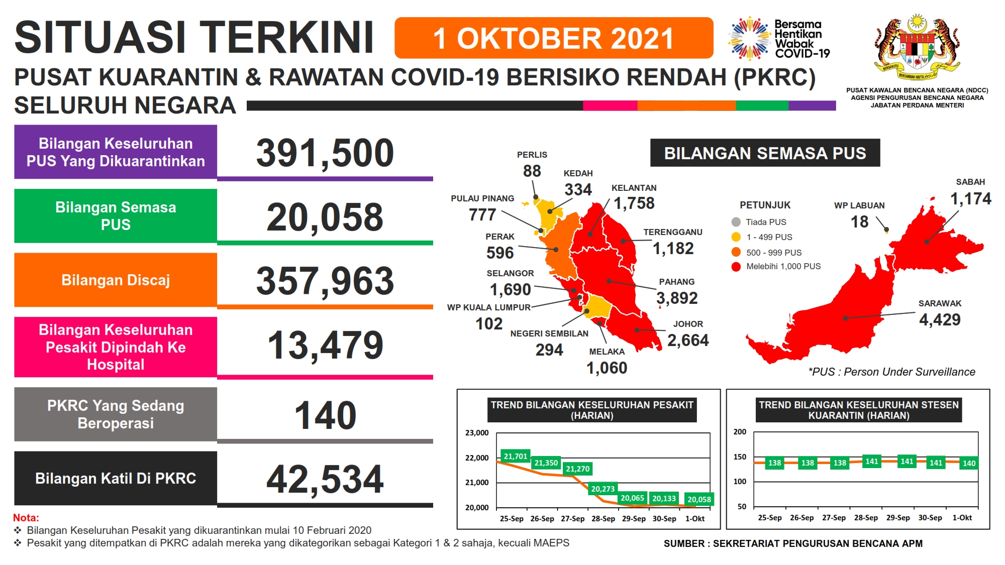 Situasi Terkini Stesen Kuarantin & Rawatan Covid-19 Berisiko Rendah (PKRC) 01/10/2021 Aiman Siaran Media 01 October 2021 Hits: 564 Rating: ( 0 Rating ) Please Rate Vote 1 Vote 2 Vote 3 Vote 4 Vote 5 Lihat / Muat Turun PDF Facebook Twitter Prev Next