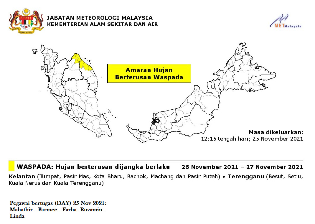 Amaran Hujan Berterusan Waspada 25/11/2021 1215 PM Aiman Cuaca 25 November 2021 Hits: 781 Rating: ( 0 Rating ) Please Rate Vote 1 Vote 2 Vote 3 Vote 4 Vote 5 Lihat / Muat Turun JPG Facebook Twitter Prev Next