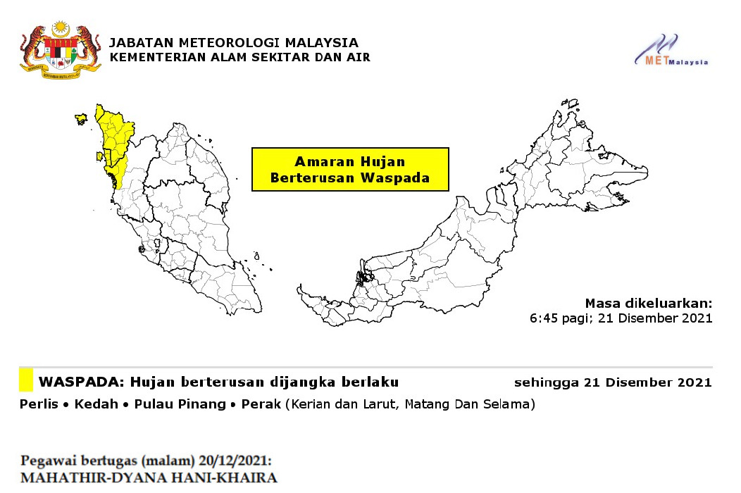Amaran Hujan Berterusan Berwaspada 21/12/2021 0645 AM Aiman Cuaca 15 December 2021 Hits: 744 Rating: ( 0 Rating ) Please Rate Vote 1 Vote 2 Vote 3 Vote 4 Vote 5 Lihat / Muat Turun JPG Facebook Twitter Prev Next