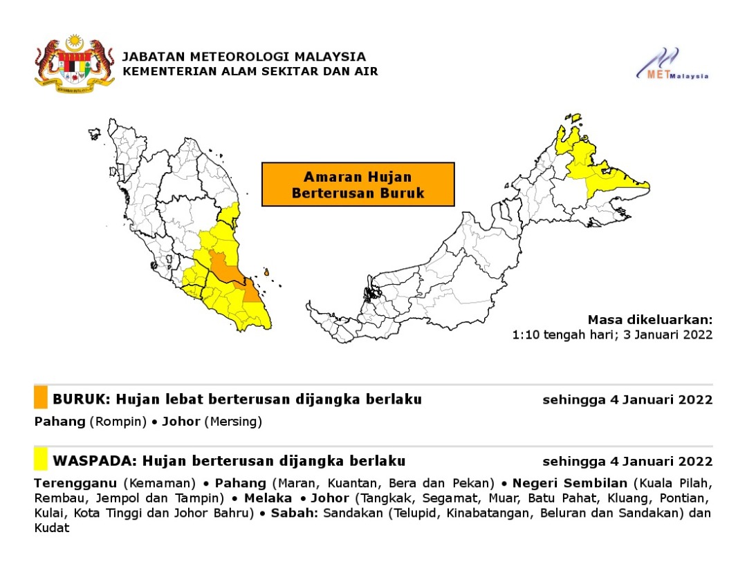 Amaran Hujan Berterusan Buruk 03/01/2022 0110 PM Aiman Cuaca 03 January 2022 Hits: 771 Rating: ( 0 Rating ) Please Rate Vote 1 Vote 2 Vote 3 Vote 4 Vote 5 Lihat / Muat Turun JPG Facebook Twitter Prev Next
