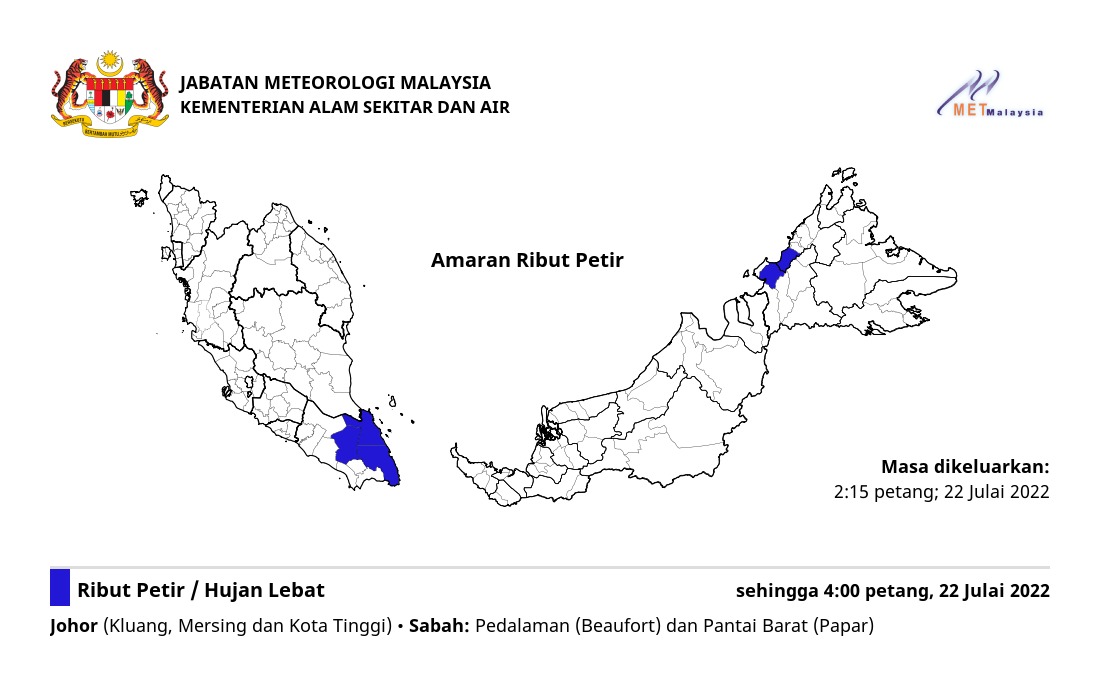 Amaran Ribut Petir 22/07/2022 1415 PM Norbazliah Cuaca 22 July 2022 Hits: 607 Rating: ( 0 Rating ) Please Rate Vote 1 Vote 2 Vote 3 Vote 4 Vote 5 Lihat / Muat Turun JPG Facebook Twitter Prev Next