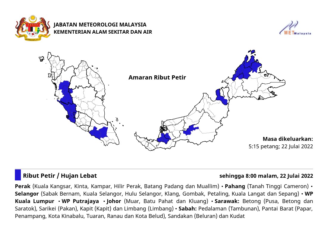 Amaran Ribut Petir 22/07/2022 1715 PM Norbazliah Cuaca 22 July 2022 Hits: 534 Rating: ( 0 Rating ) Please Rate Vote 1 Vote 2 Vote 3 Vote 4 Vote 5 Lihat / Muat Turun JPG Facebook Twitter Prev Next