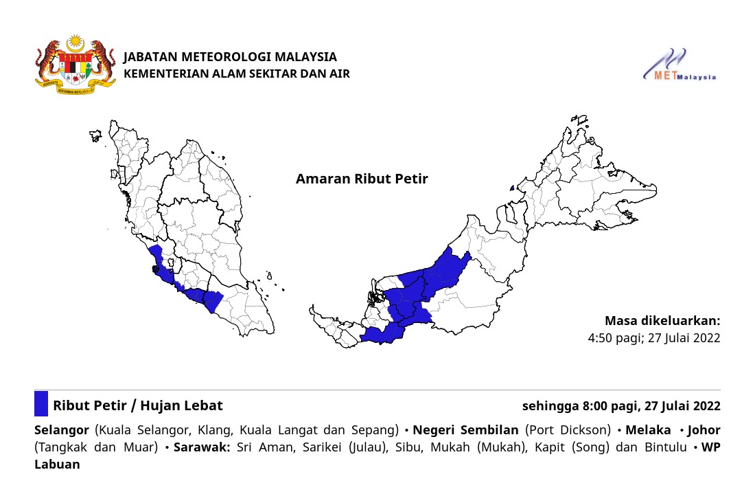 Amaran Ribut Petir 27/07/2022 0450 AM Norbazliah Cuaca 27 July 2022 Hits: 570 Rating: ( 0 Rating ) Please Rate Vote 1 Vote 2 Vote 3 Vote 4 Vote 5 Lihat / Muat Turun JPG Facebook Twitter Prev Next