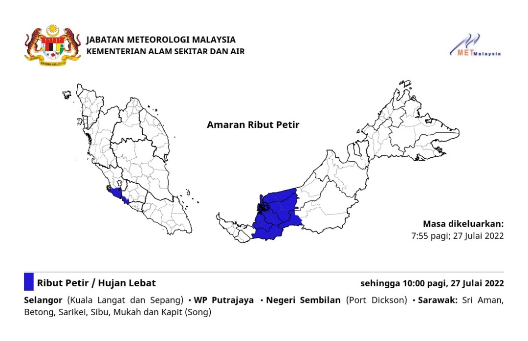 Amaran Ribut Petir 27/07/2022 0755 AM Norbazliah Cuaca 27 July 2022 Hits: 504 Rating: ( 0 Rating ) Please Rate Vote 1 Vote 2 Vote 3 Vote 4 Vote 5 Lihat / Muat Turun JPG Facebook Twitter Prev Next