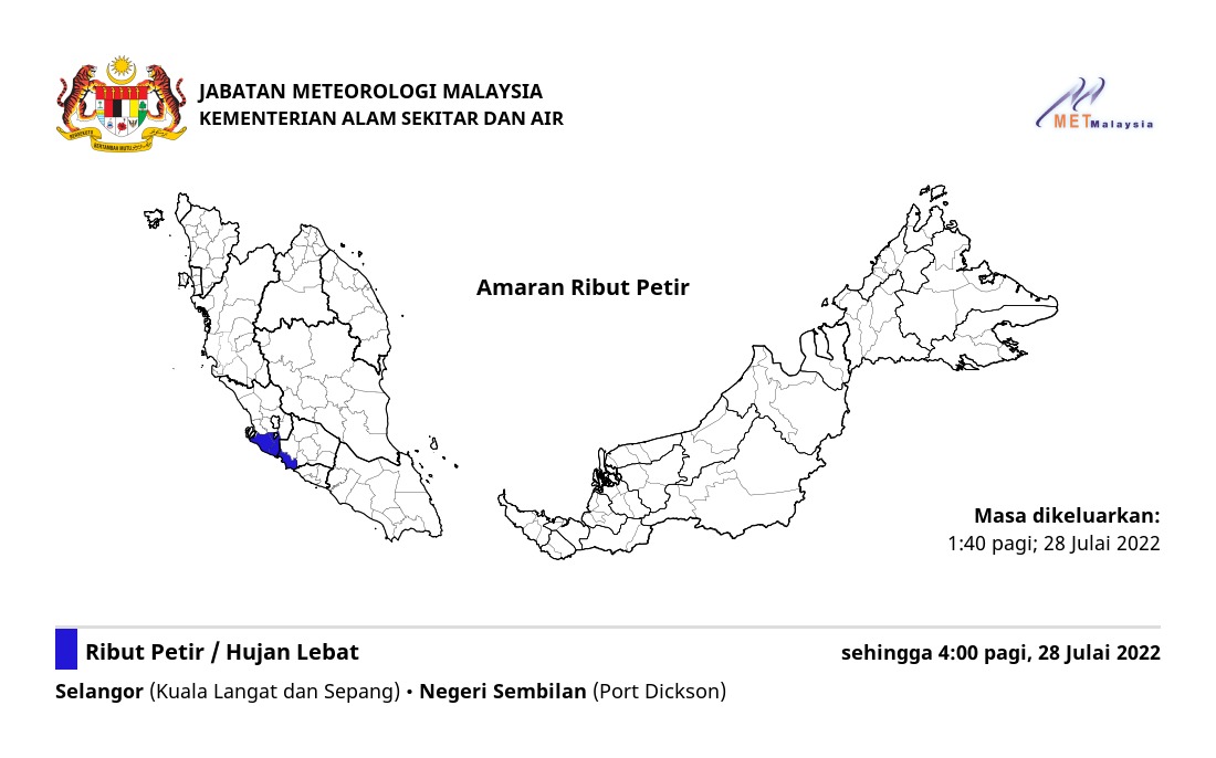 Amaran Ribut Petir 28/07/2022 0140 AM Norbazliah Cuaca 28 July 2022 Hits: 534 Rating: ( 0 Rating ) Please Rate Vote 1 Vote 2 Vote 3 Vote 4 Vote 5 Lihat / Muat Turun JPG Facebook Twitter Prev Next