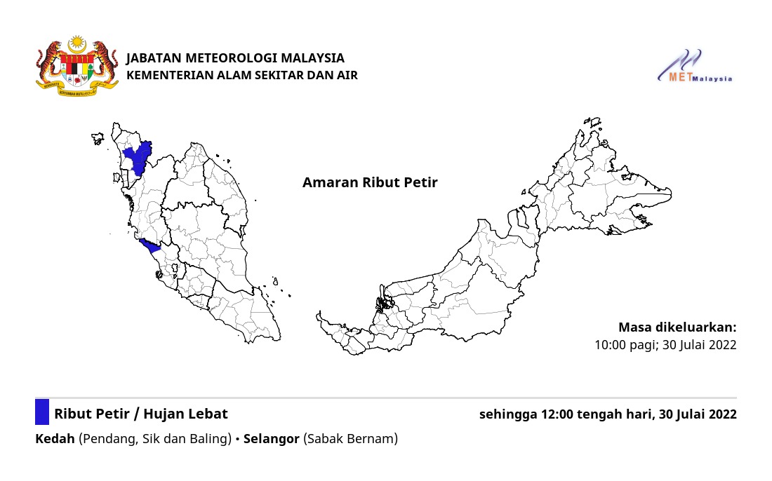 Amaran Ribut Petir 30/07/2022 1000 AM Norbazliah Cuaca 30 July 2022 Hits: 328 Rating: ( 0 Rating ) Please Rate Vote 1 Vote 2 Vote 3 Vote 4 Vote 5 Lihat / Muat Turun JPG Facebook Twitter Prev Next