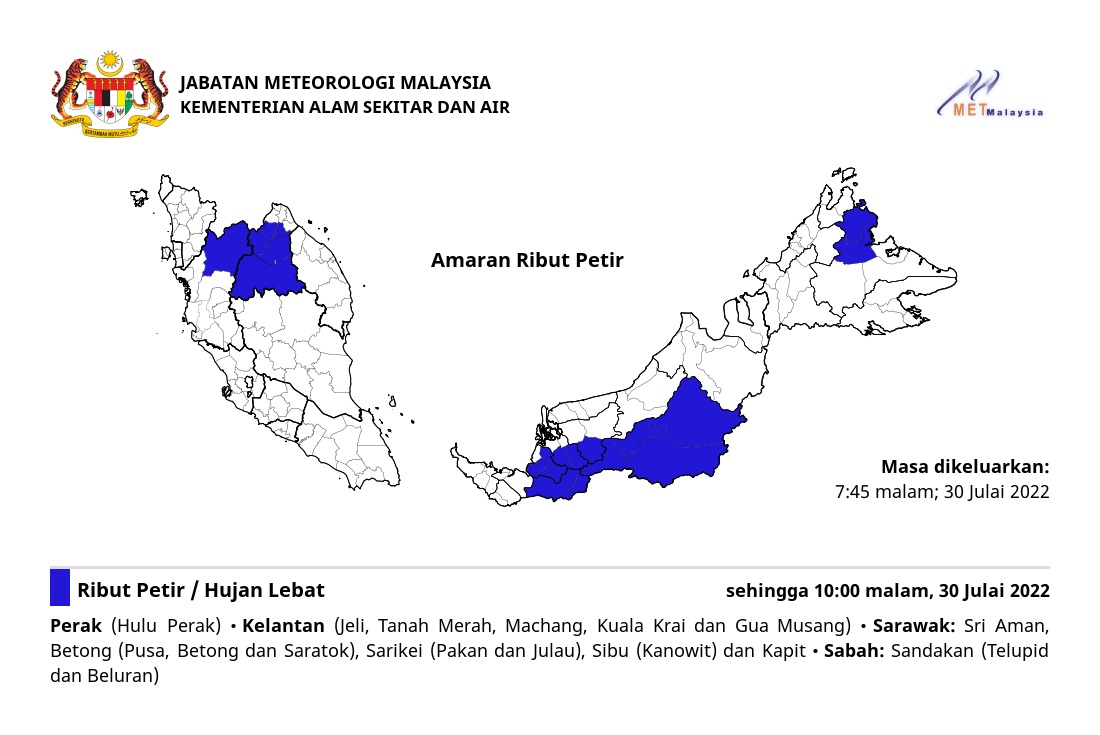 Amaran Ribut Petir 30/07/2022 1945 PM Norbazliah Cuaca 30 July 2022 Hits: 426 Rating: ( 0 Rating ) Please Rate Vote 1 Vote 2 Vote 3 Vote 4 Vote 5 Lihat / Muat Turun JPG Facebook Twitter Prev Next