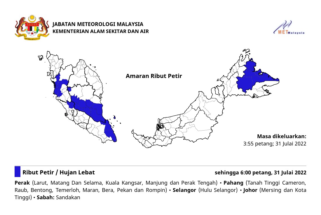 Amaran Ribut Petir 31/07/2022 1555 PM Norbazliah Cuaca 31 July 2022 Hits: 376 Rating: ( 0 Rating ) Please Rate Vote 1 Vote 2 Vote 3 Vote 4 Vote 5 Lihat / Muat Turun JPG Facebook Twitter Prev Next