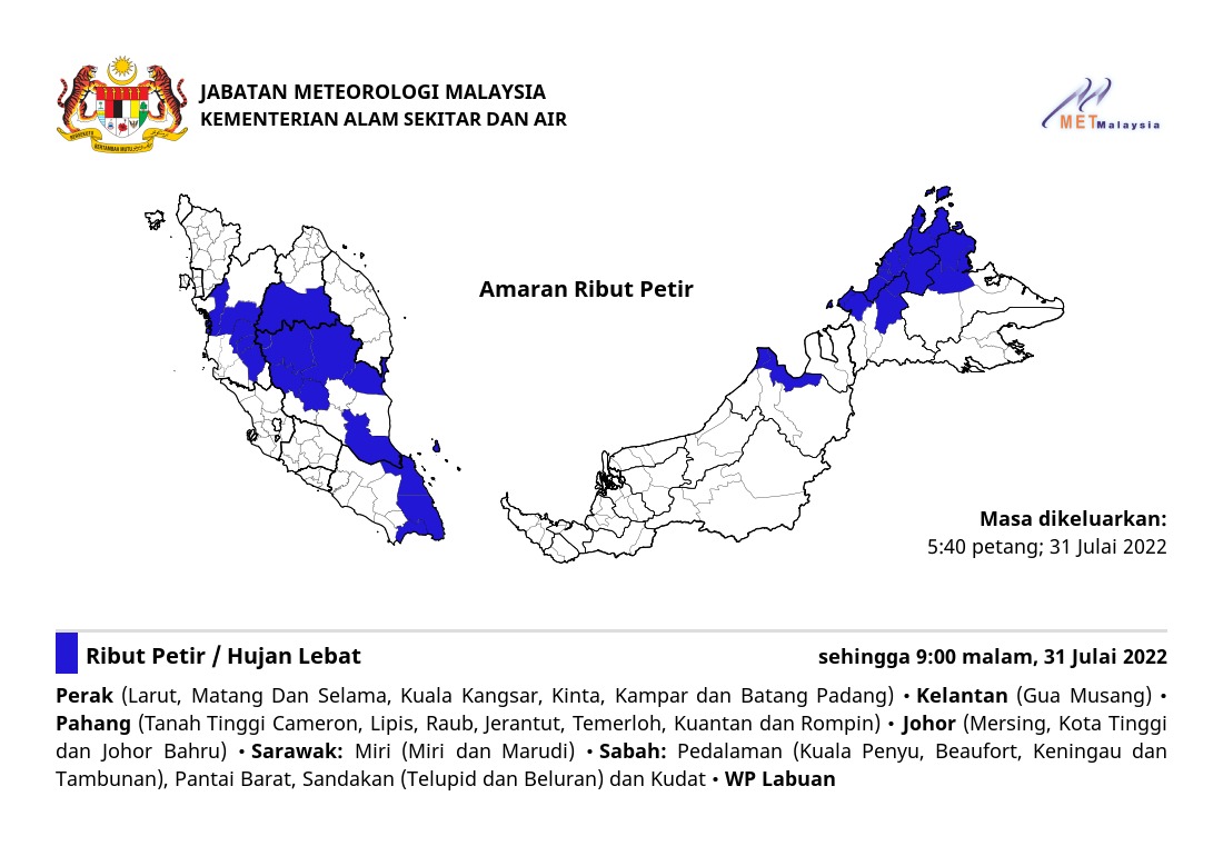 Amaran Ribut Petir 31/07/2022 1740 PM Norbazliah Cuaca 31 July 2022 Hits: 347 Rating: ( 0 Rating ) Please Rate Vote 1 Vote 2 Vote 3 Vote 4 Vote 5 Lihat / Muat Turun JPG Facebook Twitter Prev Next