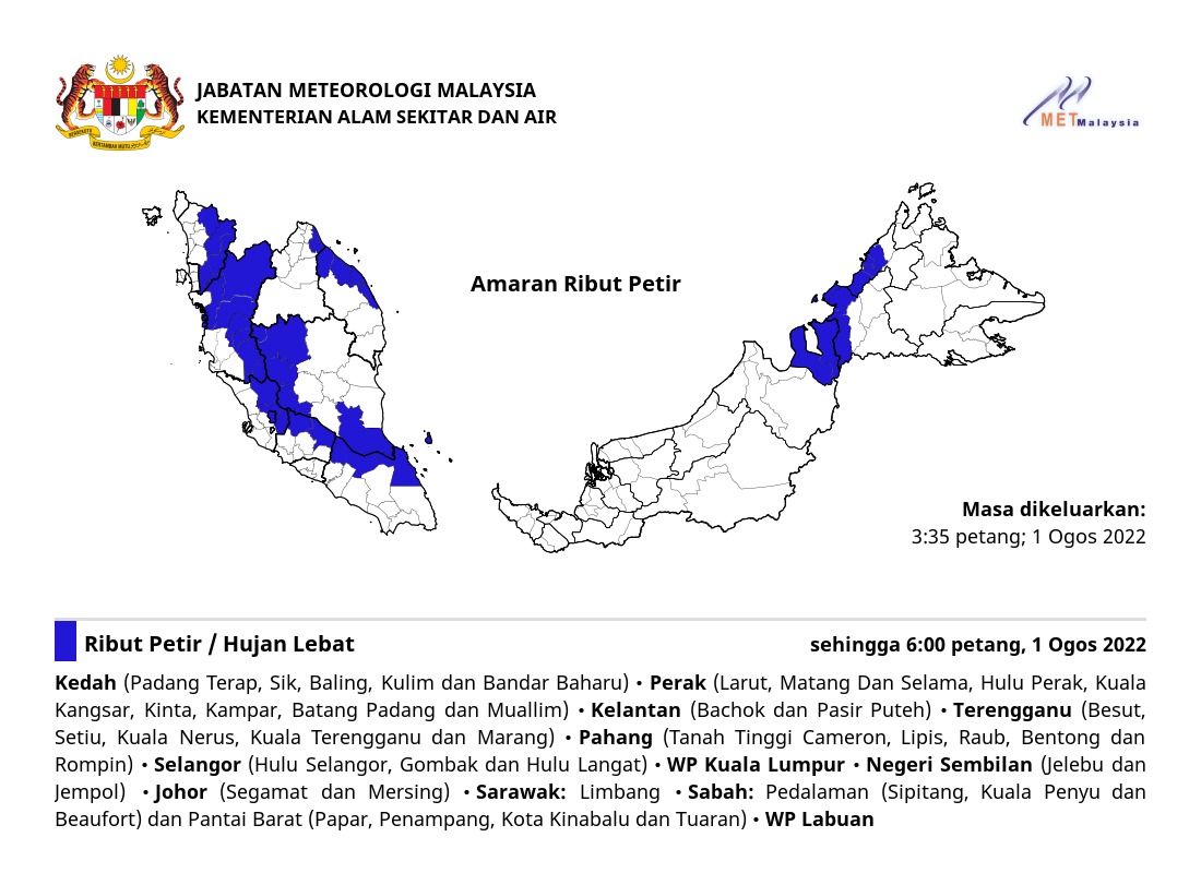 Amaran Ribut Petir 01/08/2022 1535 PM Norbazliah Cuaca 01 August 2022 Hits: 288 Rating: ( 0 Rating ) Please Rate Vote 1 Vote 2 Vote 3 Vote 4 Vote 5 Lihat / Muat Turun JPG Facebook Twitter Prev Next
