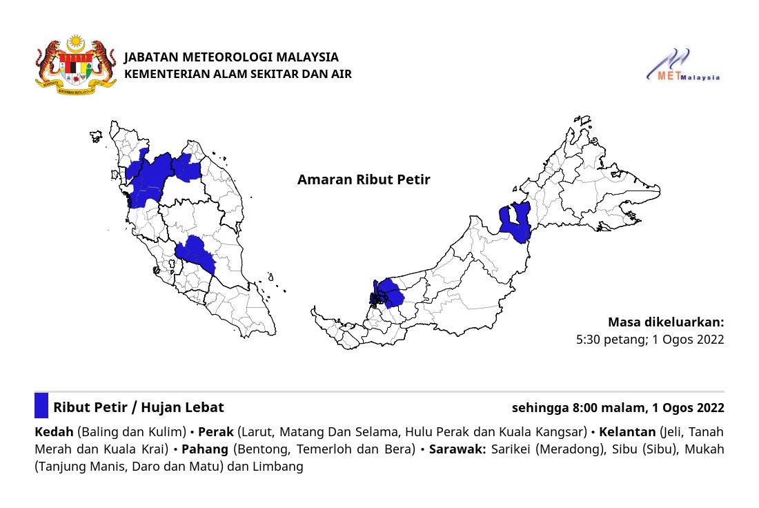Amaran Ribut Petir 01/08/2022 1730 PM Norbazliah Cuaca 01 August 2022 Hits: 261 Rating: ( 0 Rating ) Please Rate Vote 1 Vote 2 Vote 3 Vote 4 Vote 5 Lihat / Muat Turun JPG Facebook Twitter Prev Next
