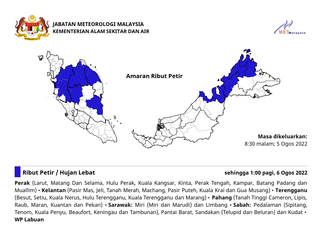 Amaran Ribut Petir 05/08/2022 2030 PM Norbazliah Cuaca 05 August 2022 Hits: 341 Rating: ( 0 Rating ) Please Rate Vote 1 Vote 2 Vote 3 Vote 4 Vote 5 Lihat / Muat Turun JPG Facebook Twitter Prev Next