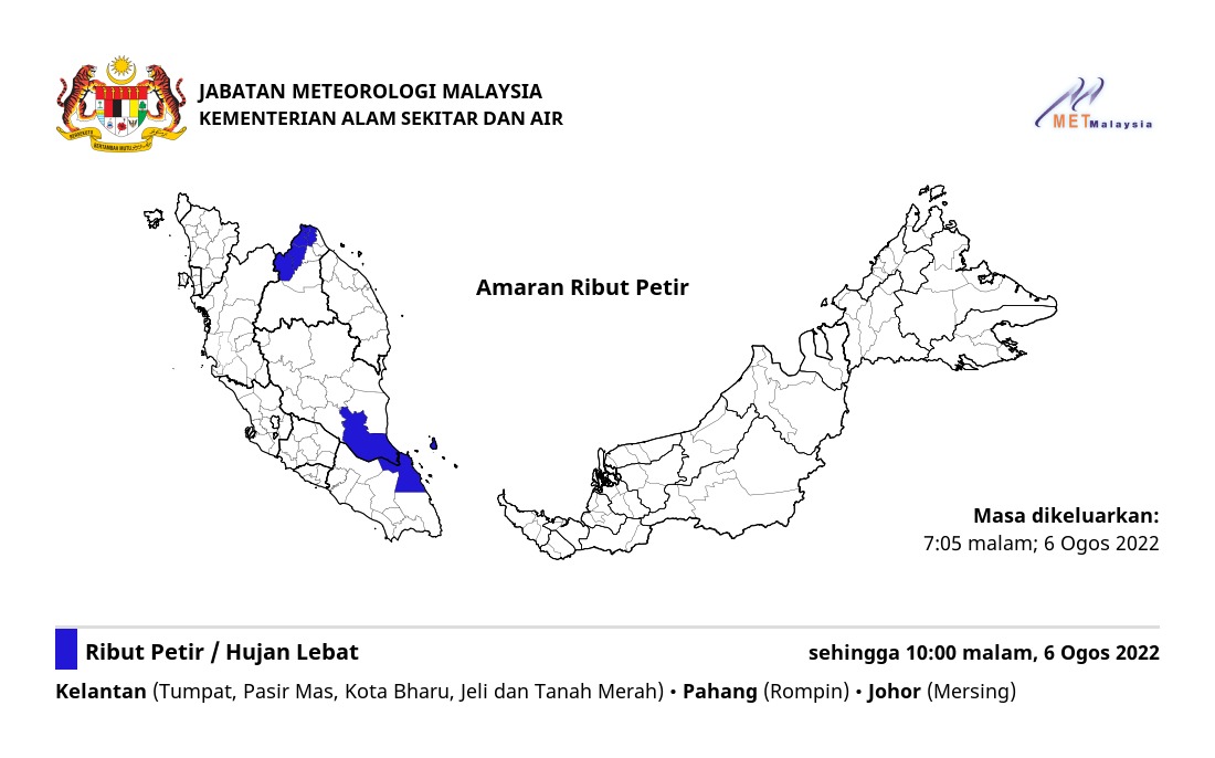 Amaran Ribut Petir 06/08/2022 1905 PM Norbazliah Cuaca 06 August 2022 Hits: 306 Rating: ( 0 Rating ) Please Rate Vote 1 Vote 2 Vote 3 Vote 4 Vote 5 Lihat / Muat Turun JPG Facebook Twitter Prev Next