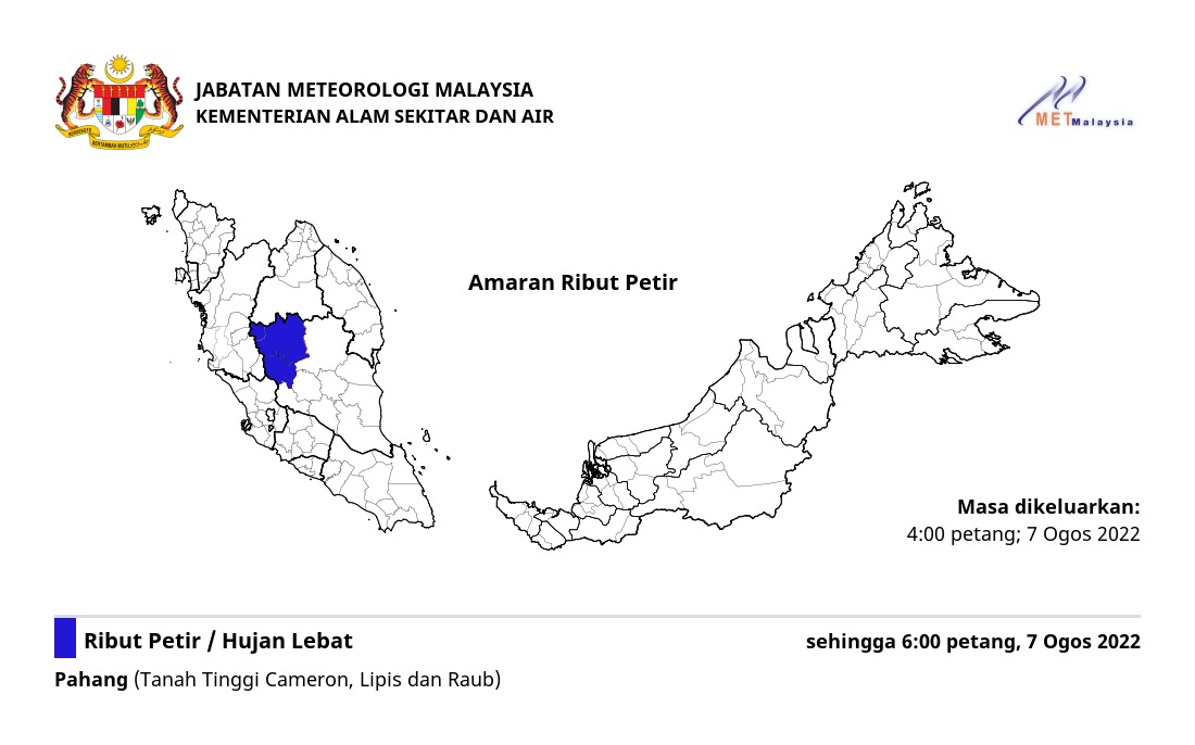 Amaran Ribut Petir 07/08/2022 1600 PM Norbazliah Cuaca 07 August 2022 Hits: 373 Rating: ( 0 Rating ) Please Rate Vote 1 Vote 2 Vote 3 Vote 4 Vote 5 Lihat / Muat Turun JPG Facebook Twitter Prev Next