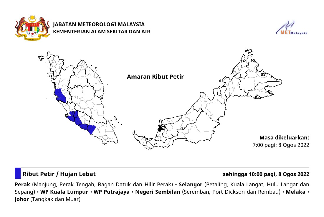 Amaran Ribut Petir 08/08/2022 0700 AM Norbazliah Cuaca 08 August 2022 Hits: 290 Rating: ( 0 Rating ) Please Rate Vote 1 Vote 2 Vote 3 Vote 4 Vote 5 Lihat / Muat Turun JPG Facebook Twitter Prev Next