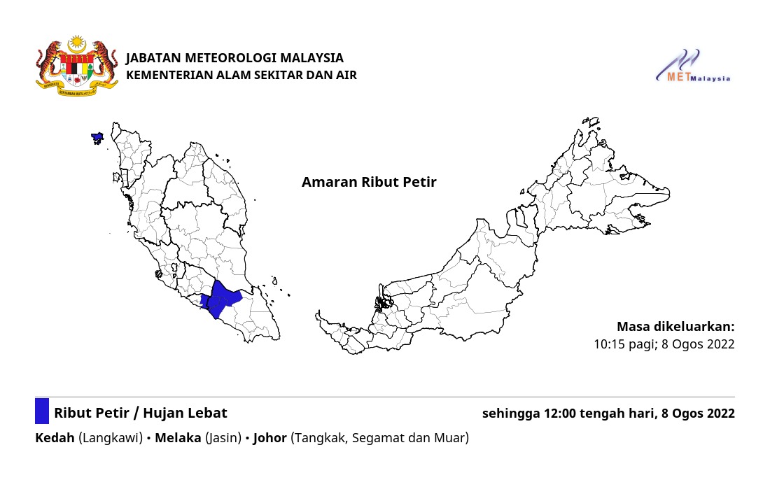 Amaran Ribut Petir 08/08/2022 1015 AM Norbazliah Cuaca 08 August 2022 Hits: 441 Rating: ( 0 Rating ) Please Rate Vote 1 Vote 2 Vote 3 Vote 4 Vote 5 Lihat / Muat Turun JPG Facebook Twitter Prev Next