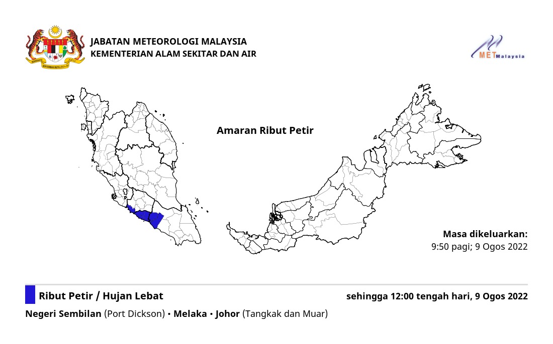 Amaran Ribut Petir 09/08/2022 0950 AM Norbazliah Cuaca 09 August 2022 Hits: 310 Rating: ( 0 Rating ) Please Rate Vote 1 Vote 2 Vote 3 Vote 4 Vote 5 Lihat / Muat Turun JPG Facebook Twitter Prev Next