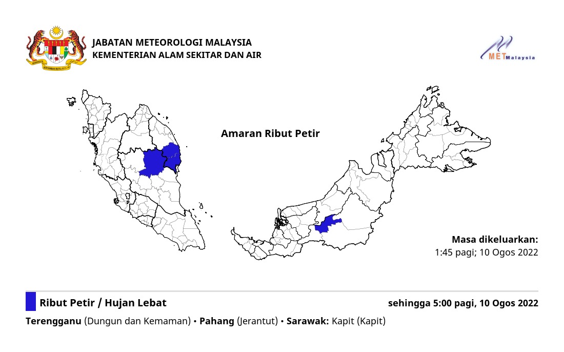 Amaran Ribut Petir 10/08/2022 0145 AM Norbazliah Cuaca 10 August 2022 Hits: 297 Rating: ( 0 Rating ) Please Rate Vote 1 Vote 2 Vote 3 Vote 4 Vote 5 Lihat / Muat Turun JPG Facebook Twitter Prev Next