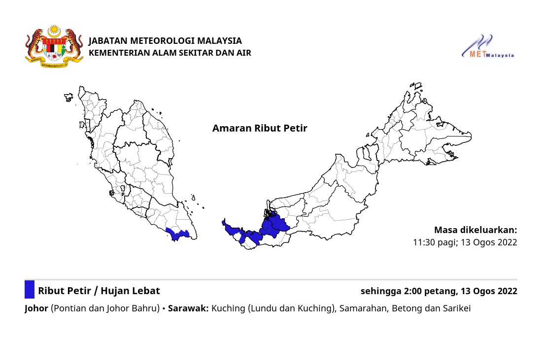 Amaran Ribut Petir 13/08/2022 1130 AM Norbazliah Cuaca 13 August 2022 Hits: 298 Rating: ( 0 Rating ) Please Rate Vote 1 Vote 2 Vote 3 Vote 4 Vote 5 Lihat / Muat Turun JPG Facebook Twitter Prev Next