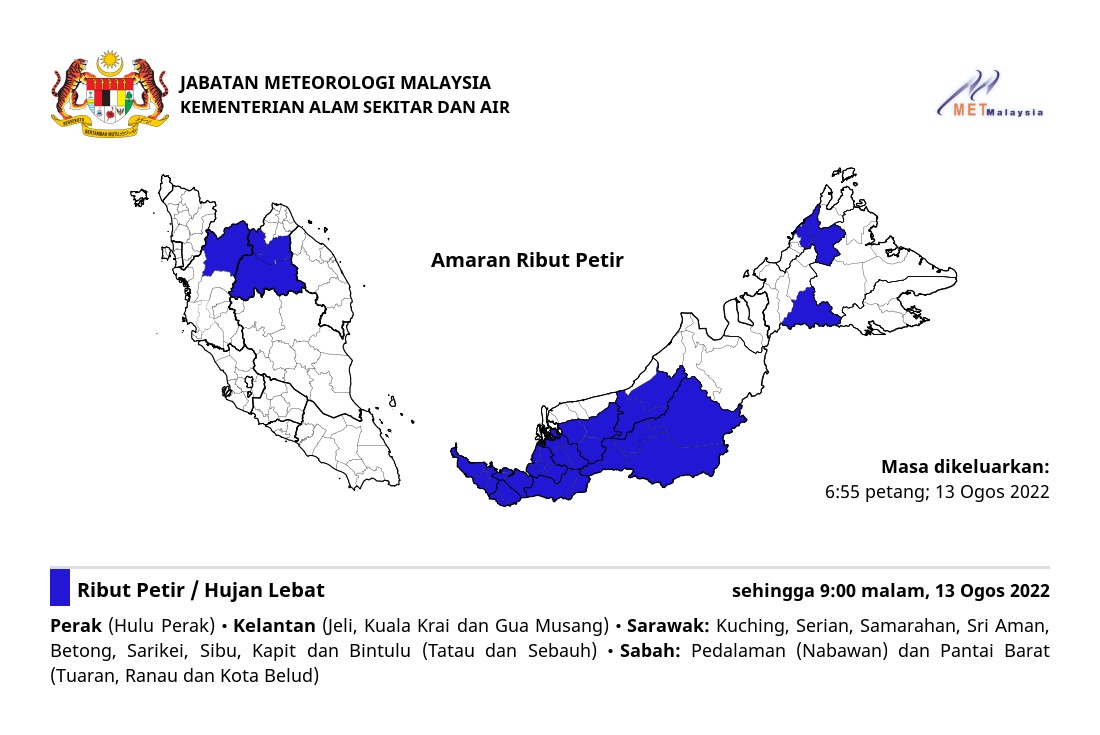 Amaran Ribut Petir 13/08/2022 1855 PM Norbazliah Cuaca 13 August 2022 Hits: 338 Rating: ( 0 Rating ) Please Rate Vote 1 Vote 2 Vote 3 Vote 4 Vote 5 Lihat / Muat Turun JPG Facebook Twitter Prev Next