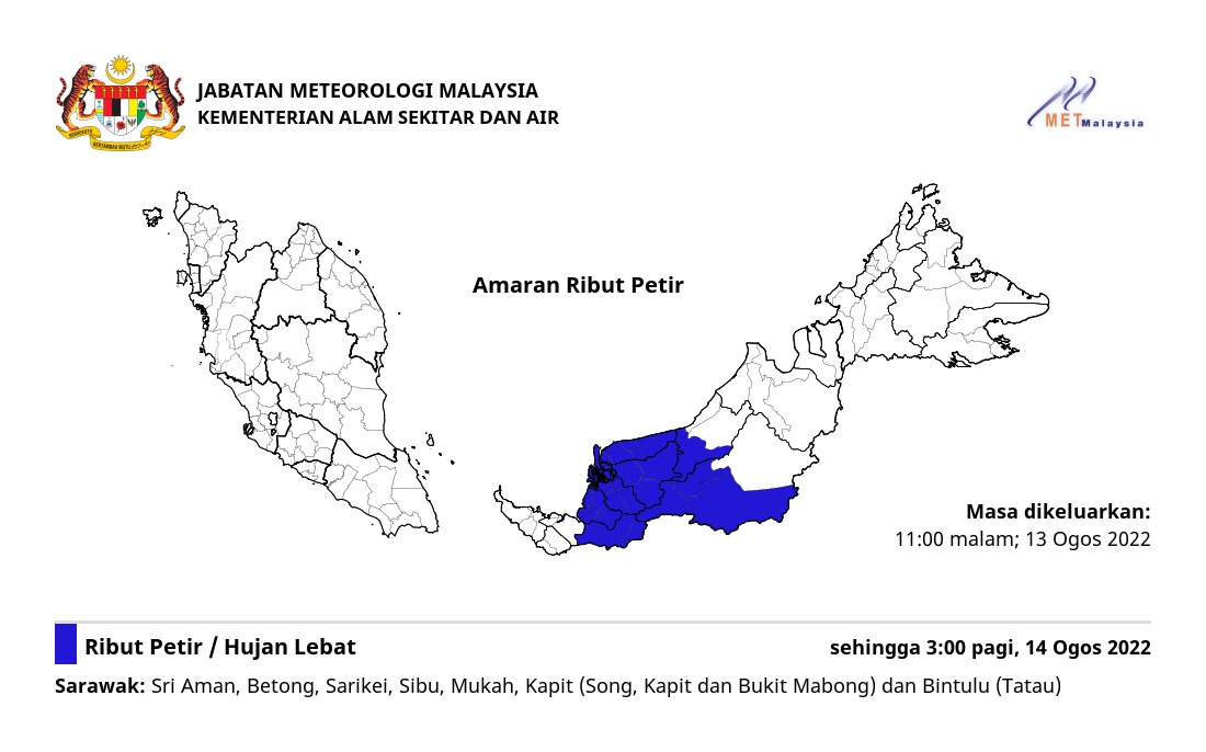 Amaran Ribut Petir 13/08/2022 2300 PM Norbazliah Cuaca 13 August 2022 Hits: 312 Rating: ( 0 Rating ) Please Rate Vote 1 Vote 2 Vote 3 Vote 4 Vote 5 Lihat / Muat Turun JPG Facebook Twitter Prev Next