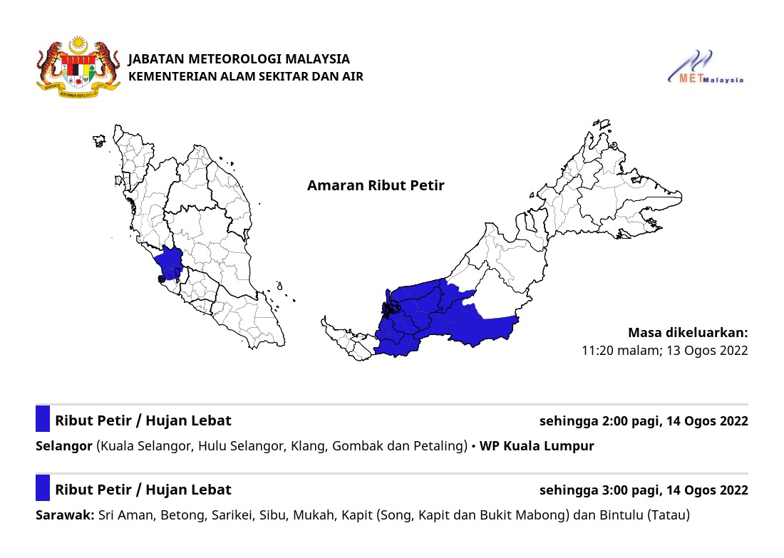 Amaran Ribut Petir 13/08/2022 2320 PM Norbazliah Cuaca 13 August 2022 Hits: 247 Rating: ( 0 Rating ) Please Rate Vote 1 Vote 2 Vote 3 Vote 4 Vote 5 Lihat / Muat Turun JPG Facebook Twitter Prev Next