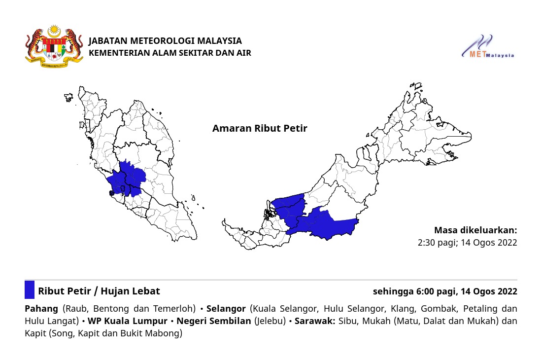 Amaran Ribut Petir 14/08/2022 0230 AM Norbazliah Cuaca 14 August 2022 Hits: 300 Rating: ( 0 Rating ) Please Rate Vote 1 Vote 2 Vote 3 Vote 4 Vote 5 Lihat / Muat Turun JPG Facebook Twitter Prev Next