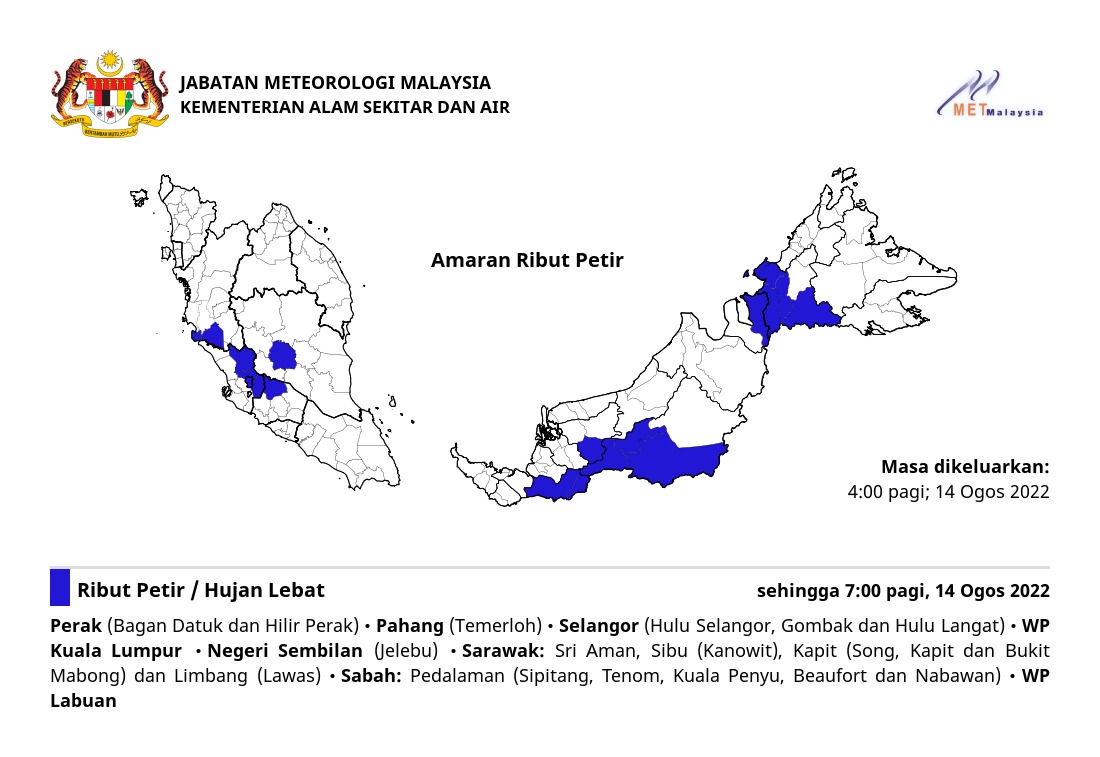 Amaran Ribut Petir 14/08/2022 0400 AM Norbazliah Cuaca 14 August 2022 Hits: 263 Rating: ( 0 Rating ) Please Rate Vote 1 Vote 2 Vote 3 Vote 4 Vote 5 Lihat / Muat Turun JPG Facebook Twitter Prev Next