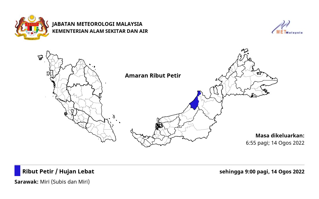 Amaran Ribut Petir 14/08/2022 0655 AM Norbazliah Cuaca 14 August 2022 Hits: 420 Rating: ( 0 Rating ) Please Rate Vote 1 Vote 2 Vote 3 Vote 4 Vote 5 Lihat / Muat Turun JPG Facebook Twitter Prev Next
